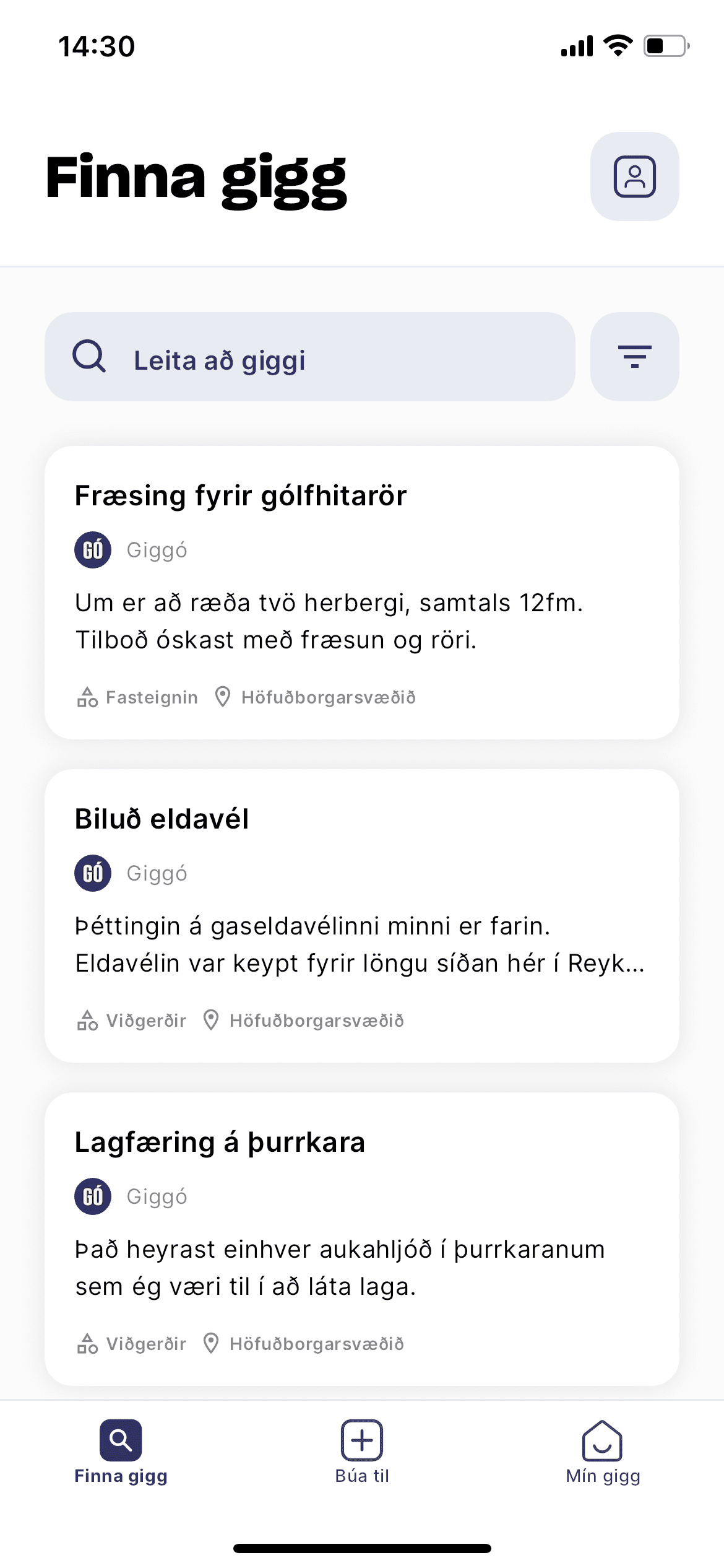 Þarftu aðstoð við bókhaldið, flutninga eða viðhald? Náðu í appið og gakktu í verkið. Póstaðu smáauglýsingu eða leitaðu uppi næsta gigg.